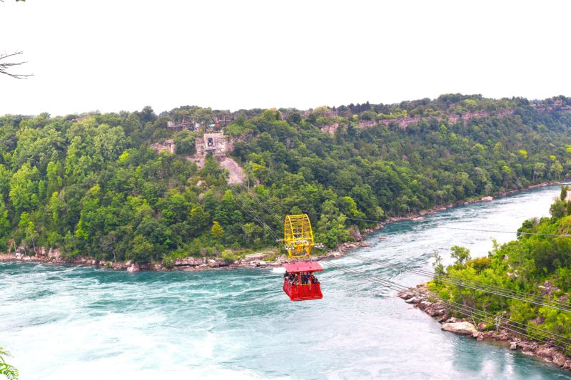 ナイアガラ川の上をロープウェイに乗ってアメリカ側ギリギリまで行って戻るアトラクション。上からナイアガラを見ることができるスポット