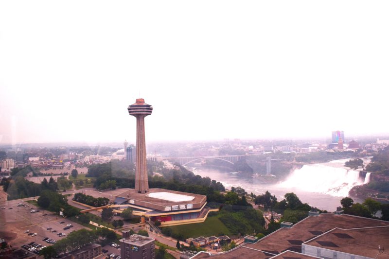 お部屋からの眺め。遠くにカナダ滝を見ることができます。目の前にホテルもあるので高層階でも結構厳しいのかも…。